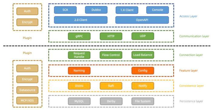 Nacos 2.0 架构层次如下图,它相比Nacos1.X的最主要变化是: