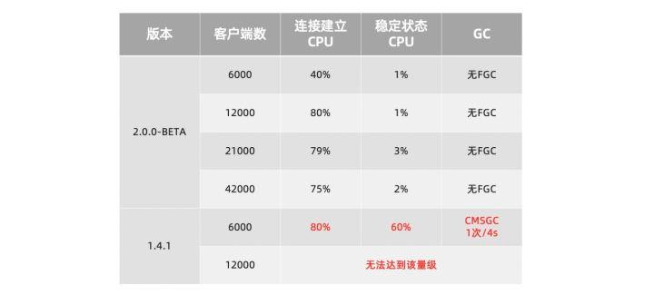 针对配置管理场景,Nacos2.0单机最高能够支撑4.2W个客户端连接;相比Nacos1.X,提升了7倍。且推送时的性能明显好于1.X。