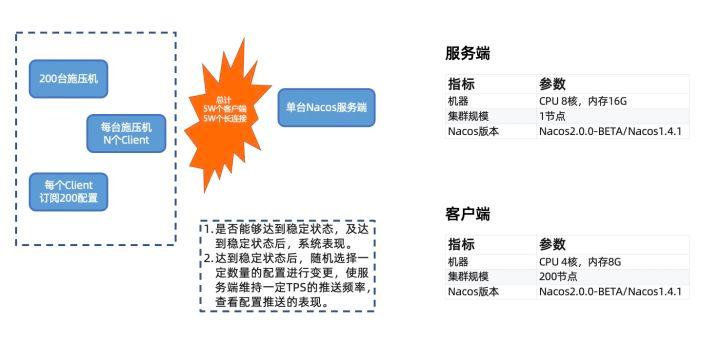 由于配置是少写多读场景,所以瓶颈主要在单台监听的客户端数量以及配置的推送获取上,因此配置管理的压测性能主要集中于单台服务端的连接数量以及大量推送的比较。