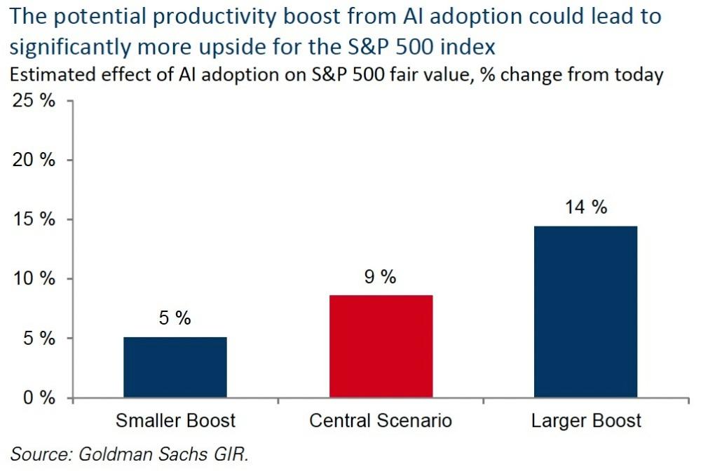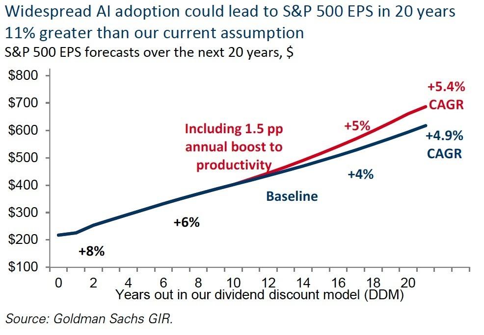 人工智能的广泛应用将使标准普尔500指数20年的每股收益比我们当前的假设高出11%。