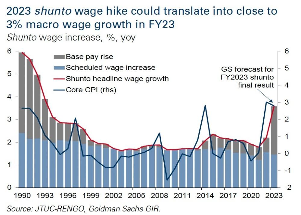 --日本工资增长;更高的工资增长可以产生更可持续和更强劲的工资-价格动态,但在我们看来,工资-价格螺旋分化是不太可能的。
