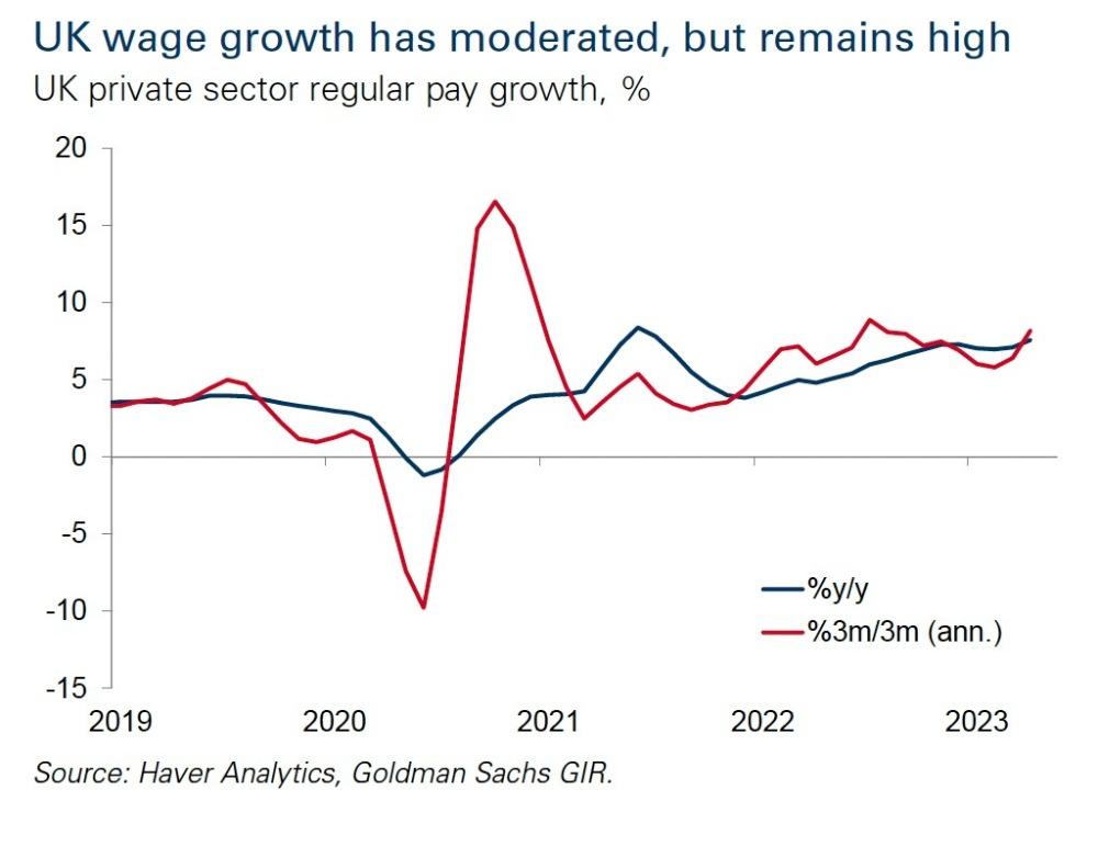 --我们最近上调了对英国央行8月份的预测,目前预计英国央行将在6月份加息50个基点(之前为25个基点),我们认为这意味着对英国通胀的更多担忧以及英国央行反应函数的转变。我们预计9月份最后一次加息25个基点,最终利率为5.75%(之前为5.5%)。