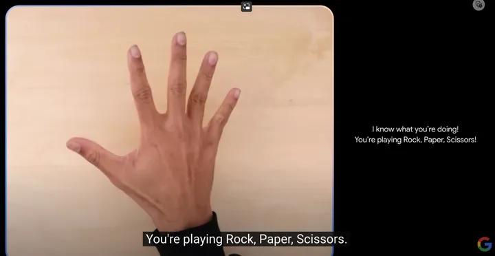 解析: demo 中展示了 gemini 多模态的理解能力,通过一个视频能理解实验者正在玩石头剪刀布的游戏。但在实际步骤中,需要讲石头、剪刀、布都各挑选出一张静态图片,再给出一个游戏的提示,Gemini 才能得出同样的答案。demo 中通过对 prompt 的剪辑,达到了一种与 Gemini 高效交互的效果