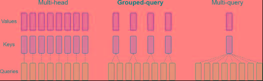 Gemini 整体结构基于 Transformer Decoder,采用了 multi-query attention 优化了计算效率。传统的多头注意力机制(multi-head attention)通过线性变换并行的构造多组 query、key、value、输出的组合。而在 multi-query attention 中不同组之间共享了同样的 key 和 value 的集合,并通过该方式降低了参数和计算量。