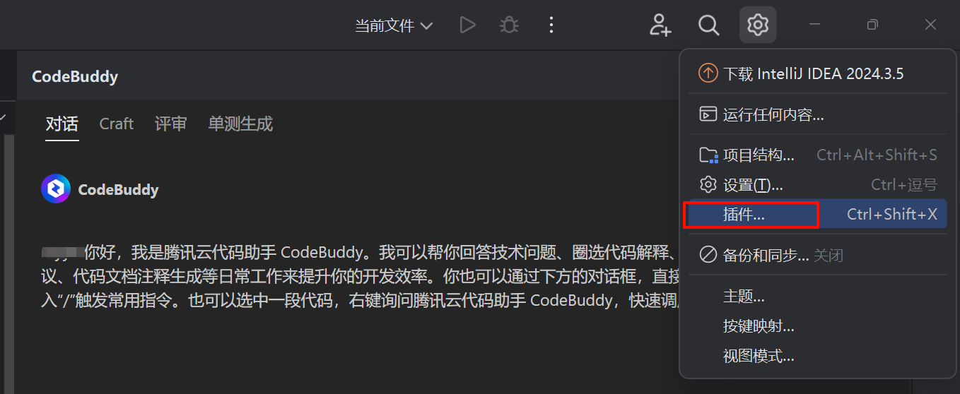 打开插件市场:在右上角的设置中,单击插件。