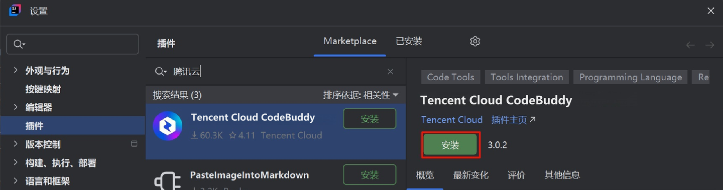 快速安装:单击一键安装腾讯云代码助手,即可快速跳转到腾讯云代码助手的安装界面。