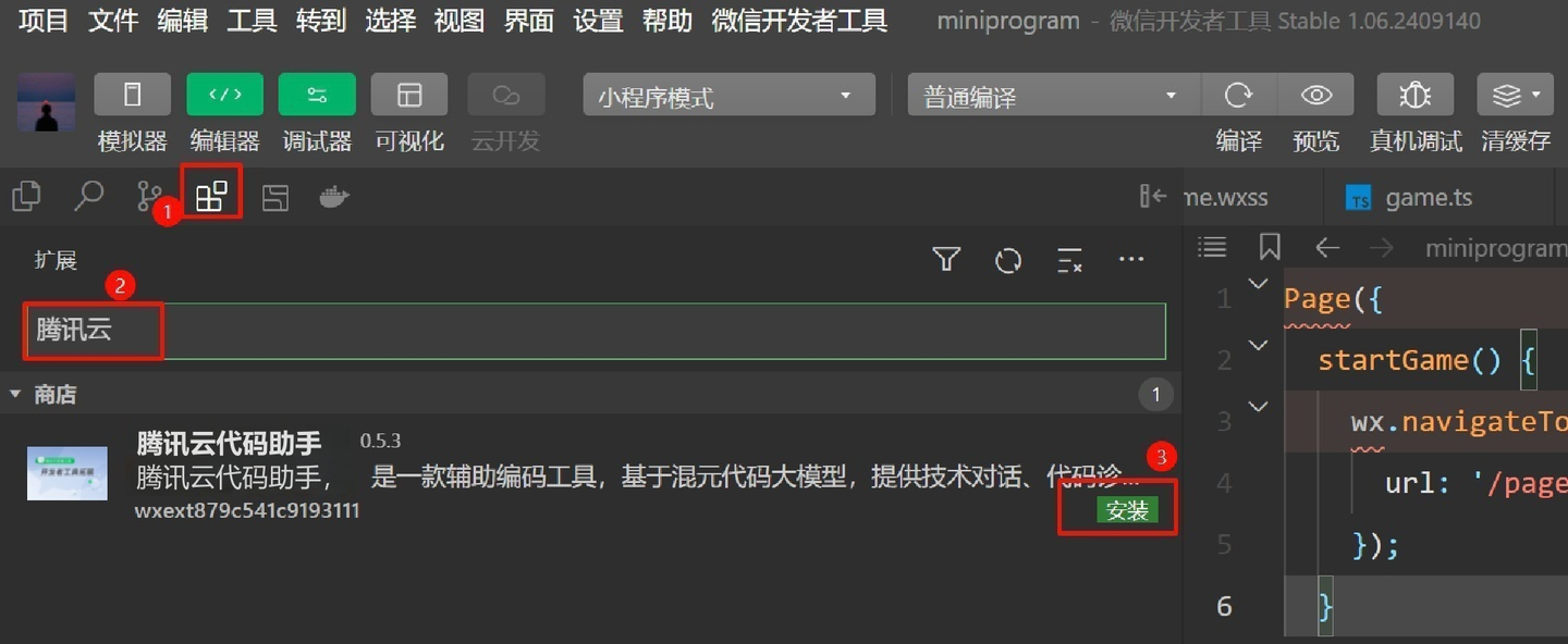 搜索腾讯云代码助手。